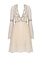 Featuring a beige tulle dress in nylon net base with bell sleeves and frill detailing at the hem. It is hand embroidered with crystals around neck and waist.