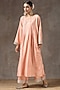 Featuring a peach kurta in tussar cotton base base with hand embroidery. It is paired with matching jama pants in cotton satin base and a cotton silk dupatta.