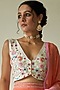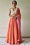 Featuring a dark peach lehenga in georgette base with floral sequins hand embroidery. It is paired with a contrasting white tussar cotton floral blouse and a pink dupatta.