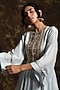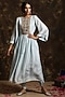 Featuring a sky blue kurta in summer silk base with dabka and zardosi embroidery. It is paired with matching crepe dhoti pants.
