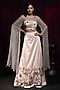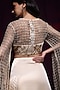 Featuring an ivory lehenga in bemberg silk base with dabka, stones, moti, cutdana, sequins and zari hand embroidery. It is paired with a blouse having long cape sleeves and laser cutwork. Accentuate it with metallic heels and statement earrings, perfect for a wedding, engagement party or sangeet night.