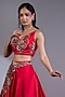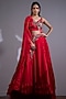 Featuring a red trail lehenga in bemberg silk base with mukaish, cutdana, sequins and zari hand embroidery. It is paired with a blouse and a pure georgette dupatta having feather detail. Accentuate it with statement jewellery and embellished heels for a wedding reception or sangeet ceremony.