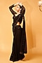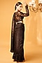 Featuring a black saree in flat chiffon silk base with embellishment. It is paired with an embroidered blouse and an underskirt. Accentuate it with statement jewellery and heels for a festive occasion.
