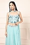 Featuring a blue lehenga in silk base with embroidery. It is paired with an embroidered blouse and a choker dupatta. Accentuate it with traditional gold jewellery and heels, perfect for weddings, sangeet and festive celebrations.