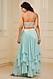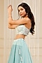 Featuring a blue lehenga in silk georgette base. It is paired with a blouse. Accentuate it with dangler earrings and heels for a sangeet or cocktail ceremony.