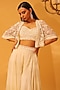 Featuring an ivory jacket in flat chiffon silk base with 3D embroidery. It is paired with a blouse and sharara pants. Accentuate it with statement jewellery and metallic heels for an opulent look, perfect for sangeet, receptions and glamorous festive celebrations.