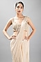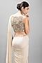 Featuring an ivory pre-draped saree in silk chiffon base. It is paired with an embroidered blouse. Accentuate it with statement earrings and heels, perfect for weddings, receptions and festive occasions.