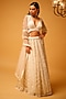 Featuring an ivory lehenga in tulle base with embroidery. It is paired with a blouse. Accentuate it with dangler earrings and heels for sangeet or cocktail ceremony.