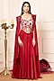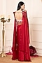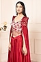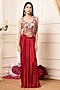 Featuring a red cape in satin base with embroidery. It is paired with a blouse and a draped skirt. Style it with statement earrings, soft curls and block heels for a festive occasion, wedding or sangeet ceremony.