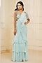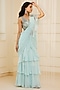 Featuring a sky blue pre-draped saree in flat chiffon base. It is paired with an embroidered blouse. Accentuate it with statement earrings and block heels for sangeet ceremonies or cocktail parties.