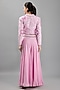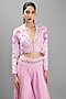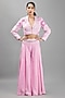 Featuring a soft pastel pink short jacket in organza and silk base with embroidery. It is paired with sharara pants. Accentuate it with statement jewellery and heels for an elegant look, perfect for an upscale evening soiree or festive gatherings.