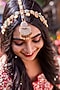 Featuring a gold finish mathapatti with thread, dabka, mirror, moti, and ghungru hand embroidery, set in mixed metal.
