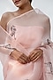 Pale Powder Pink Silk Organza Hand Painted Saree