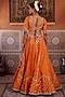 Rust Orange Banarasi Silk Sequins Embroidered Lehenga Set