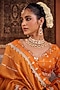 Featuring a rust orange lehenga in banarasi silk base with hand mirror, dabka, pearl and sequins embroidery. It is paired with a brocade silk embroidered blouse and a shimmer tissue embroidered dupatta. Accentuate it with statement earrings and heels for a bridesmaid look, weddings or sangeet ceremonies.