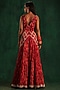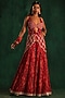 Featuring a fuchsia and purple jumpsuit in chiffon base with print, including mirror, thread, beads and sequins embroidery. Accentuate with statement earrings and heels for a festive look.