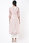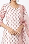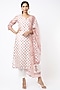 Featuring a peach kurta in chanderi base with block print. It is paired with contrasting white cotton pants and a dupatta.