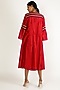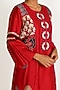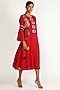 Featuring a cherry red dress in silk chanderi base with applique embroidery. It is paired with a matching inner.