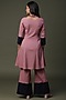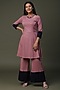 Featuring a dusty pink tunic in cotton lycra base. It is paired with matching flared pants.