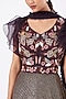Featuring an old mauve gown in chinon silk base with french knots, cutdana, and organza flower embroidery. It is paired with a matching belt and a net dupatta.