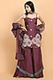 Featuring a purple kurta in silk base with leather, moti and embroidered motifs. It is paired with matching fringed gharara pants and a net ruffled dupatta. Accentuate it with dangler earrings and heels for a festive occasion or an engagement ceremony.