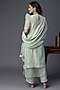Featuring a sea green kurta in chanderi silk base with puffed sleeves and hand painting. It is paired with matching calf length pants and a patra work dupatta.