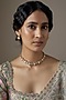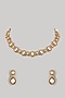 Featuring a gold finish adjustable necklace studded with moissanite polki, set in 92.5 sterling silver. It is paired with a matching a pair of earrings. Perfect choice for weddings or other Indian festivities.