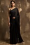 Featuring a black and silver saree in satin georgette base with tilla work. It is paired with a matching silk blouse.