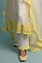 Featuring a cream and yellow A-line kurta in organza base with hand floral embroidery and swarovski embellishments. It is paired with matching pants and a dupatta.