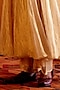 Featuring a golden anarkali in tissue base with multi-colored mirror and dabka embroidery. It is paired with pants. Accentuate with statement earrings and heels for any festive occasion or haldi ceremony.