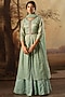 Aqua Handwoven Tissue Silk Embroidered Pleated Kurta Set