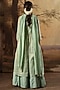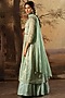 Featuring an aqua box pleated kurta in handwoven tissue silk base with thread, sequin and zari embroidery. It is paired with a matching skirt and an embroidered dupatta.