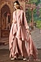 Featuring a lilac asymmetrical top in handwoven tissue silk base with sequins, thread, and knot hand embroidery. It is paired with a matching draped silk skirt and a scarf.