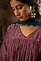 Featuring a wine gathered kurta in handwoven chanderi silk base with thread, sequin and zari embroidery. It is paired with matching pants, a dupatta and an inner.