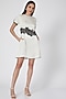 Featuring an ivory and forest green flared dress in linen satin blend base with monogrammed buttons, hand sketch and digital print details.