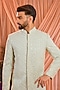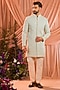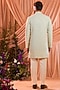 Featuring an aqua blue sherwani in georgette base with cutdana hand embroidery. Style it with pants, a beaded mala and mojris for a wedding or engagement ceremony.