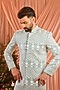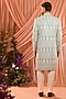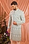 Featuring an aqua blue chikankari sherwani in silk base with threadwork and sequin embellishments. Style it with pants and mojaris for a wedding or engagement ceremony.