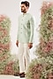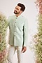 Featuring an aqua bandhgala in silk base with zari work. Accentuate it with pants and pair of loafers for a wedding or sangeet ceremony.