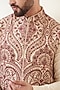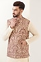 Featuring a beige nehru jacket in georgette base with kashmiri jamawar embroidery.