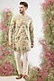 Featuring a beige kurta in georgette base with kashmiri embroidery. Accentuate it with trousers, pair of kolhapuris and a bracelet for festive celebrations or sangeet ceremony.