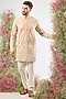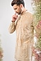 Featuring a beige short kurta in georgette base with kashmiri thread work. Accentuate it with trousers, pair of kolhapuris and a bracelet for festive celebrations or sangeet ceremony.