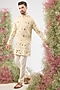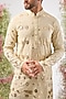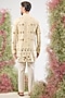 Featuring a beige kurta in georgette base with sequins, leather, chikankari and patch work. Accentuate it with trousers, pair of kolhapuris and a bracelet for festive celebrations or sangeet ceremony.
