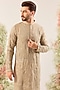 Featuring a beige kurta in georgette base with thread work and floral embroidery. Accentuate it with pants, a pair of mojaris and a watch for a festive occasion or sangeet ceremony.