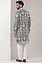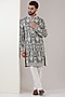 Featuring a black kurta in georgette base with thread embroidery. It is paired with contrasting white pants. Perfect wear for engagement or festive occasions.