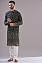 Featuring a black kurta in georgette base with thread work. It is paired with contrasting white pants. Perfect wear for a sangeet or festive occasions.