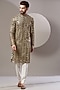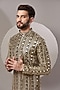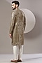 Featuring a black kurta in georgette base with zari embroidery. It is paired with contrasting white pants. Perfect wear for a sangeet or engagement ceremony.