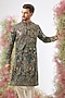 Featuring a black kurta in georgette base with thread work and sequins detail. Accentuate it with trousers, pair of kolhapuris and a bracelet for festive celebrations or sangeet ceremony.