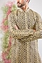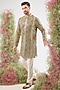 Featuring a black and gold short kurta in georgette base with geometric pattern and sequins work. Accentuate it with trousers, pair of kolhapuris and a bracelet for festive celebrations or sangeet ceremony.
