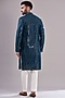 Featuring a blue kurta in georgette base with mirror and thread work. It is paired with contrasting white pants. Perfect wear for a sangeet or festive occasions.