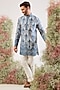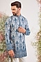 Featuring a blue kurta in organza base with chikankari embroidery. Accentuate it with pants, a pair of mojaris and a watch for a festive occasion or sangeet ceremony.